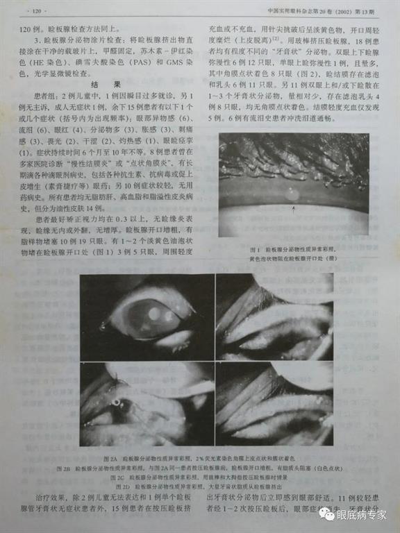 那时,我在图书馆查找,没查到国内有关睑板腺功能异常文章,就连专业书里也没有见到,但查到了大量国外文献里发表的GMD文章。因此,我决定在门诊观察一下到底有多少患者和正常人有GMD的表现。