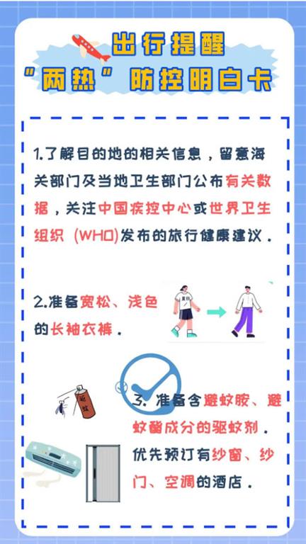 8月6日晚上,广州市疾病预防控制中心发布预防基孔肯亚热机场、车站、码头旅客健康指引及出行、返回“明白卡”。